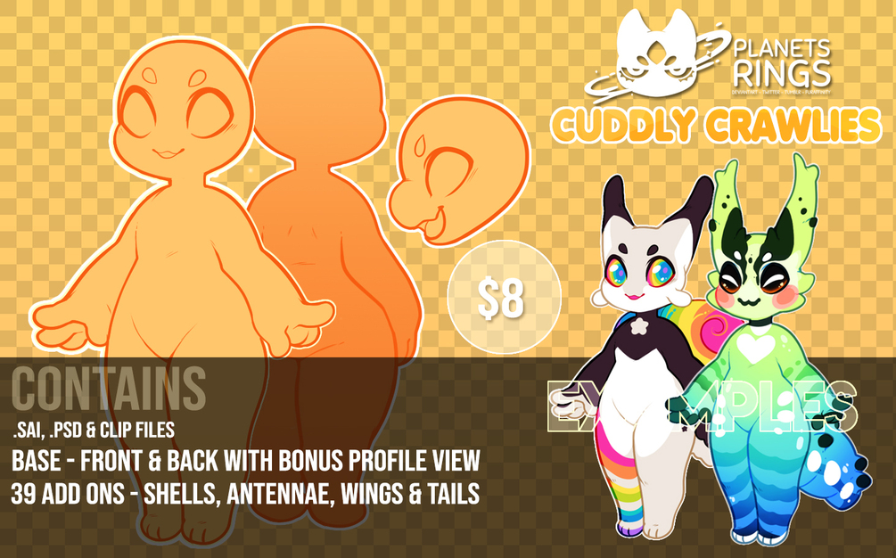 Make your own characters, references and adoptables on this chibi base! Comes with a variety of add ons to suit different insects!